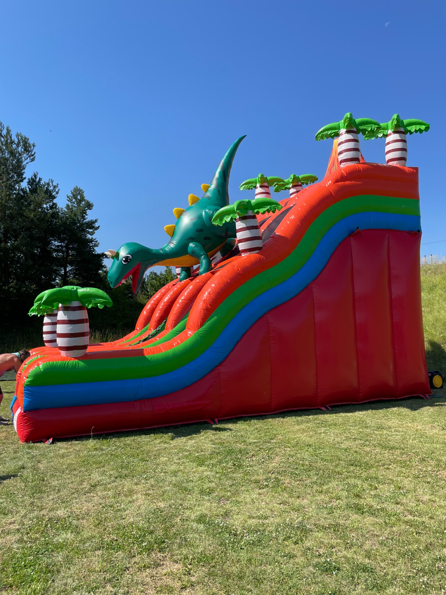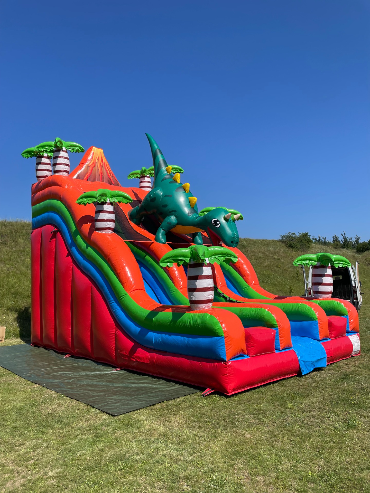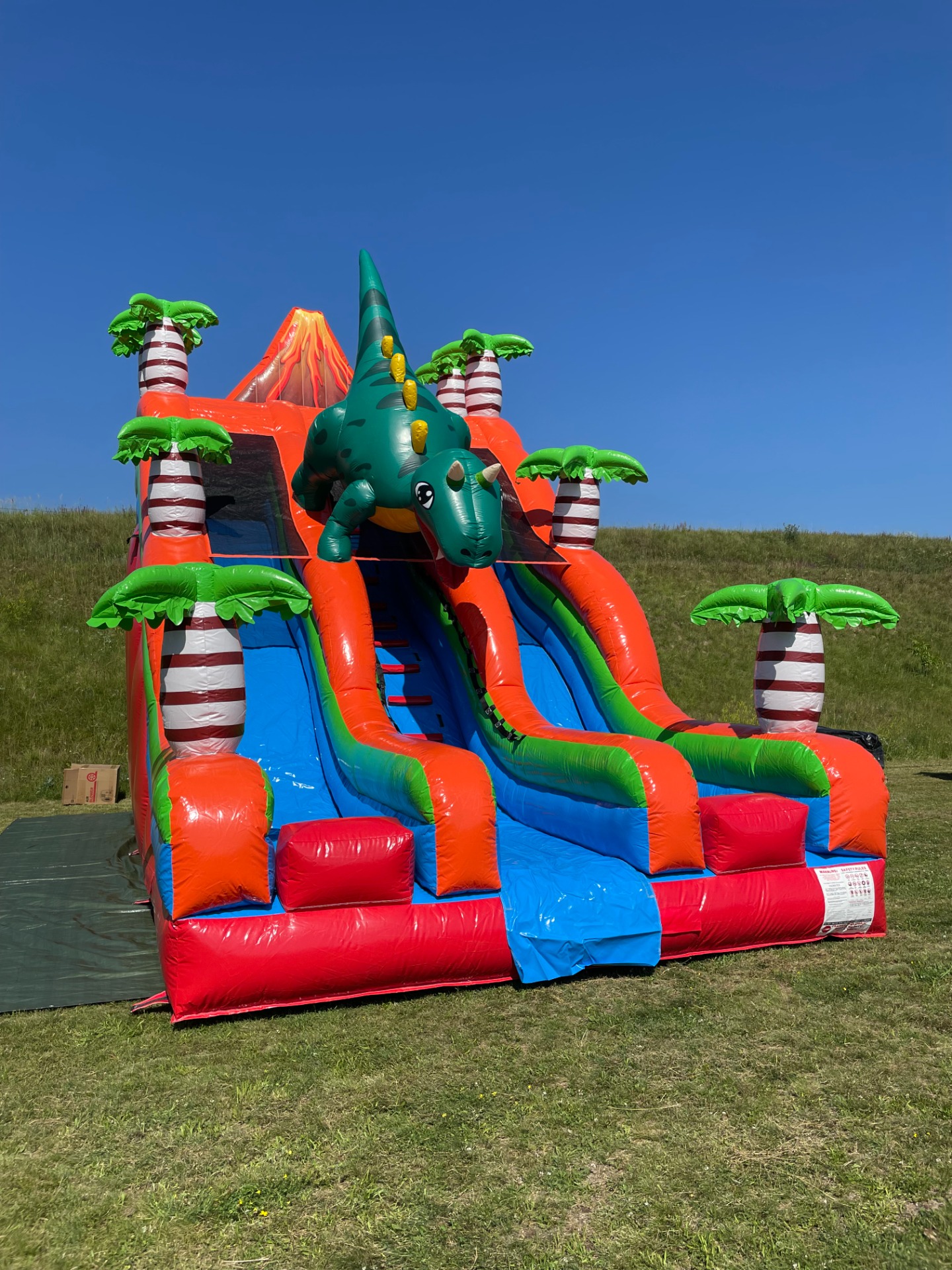 Skákací hrad Dinosaurus je nafukovací atrakce se skluzavkou, která je ideální především pro větší děti. Díky své výšce a výraznému motivu dinosaurů patří mezi velmi oblíbené atrakce na dětské oslavy, školní akce i obecní slavnosti.